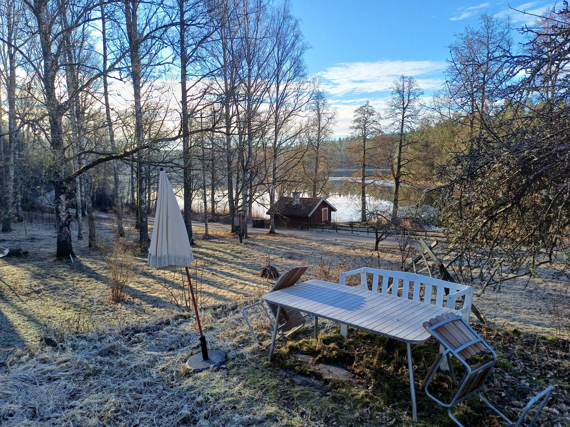 En frostig morgon med klar luft. Sjön ligger spegelblank. Rödhaken har kommit igång på allvar. I bakgrunden hörs något som jag inte hört på länge. Orrspel någonstans uppe i skogen. Jag vet att det inte är några större våtmarker i närheten men tror att de spelar på några mindre fuktsvackor mellan bergen med öppen karaktär. Tranor trumpetar och en dubbeltrast sjunger sin lite mer enformiga sång än koltrasten. Det är inte lätt att vara säker på vilken trast som sjunger men redan har jag haft förmånen att höra både samtidigt och då är det inget tvivel vem som är vem.