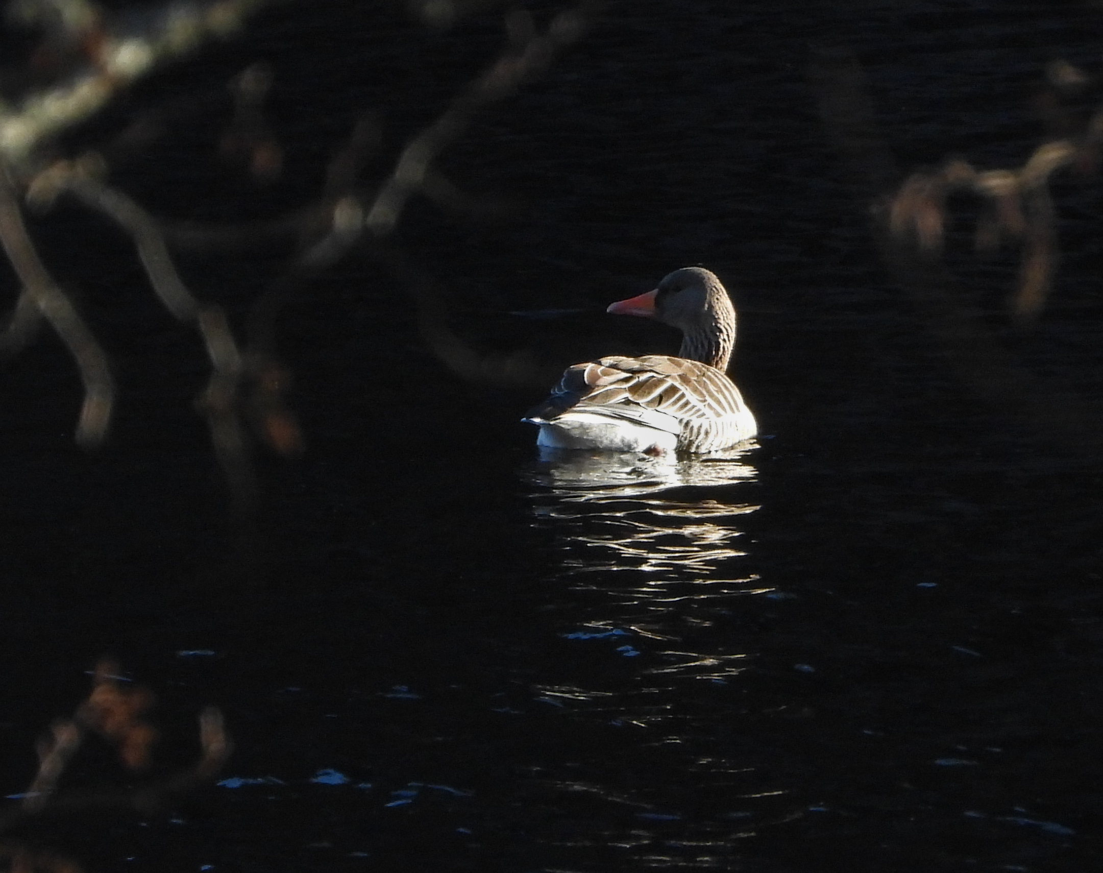 Fåglarna i sjön och omgivande marker har jag följt sedan jag var liten. En del änder, kanadagäss och framförallt storlom har varit typiska arter. Men denna kväll landar två grågäss och simmar stilla runt omgivna av knipor och gräsänder. Hoppas att håller sig kvar och häckar i närheten. Nu händer massor och nya vårtecken dyker upp varje dag. Jag inväntar att höra första morkullan för året. Försöker hålla mig utomhus precis i skymningen då morkullans spelflykt brukar kunna ses längs med skogsbryn. Det speciella lätet med knorrrp-knorrrp följt av tjipp eller tjipp-tjipp går inte att missta sig på. Bara att ut och lyssna och spana.